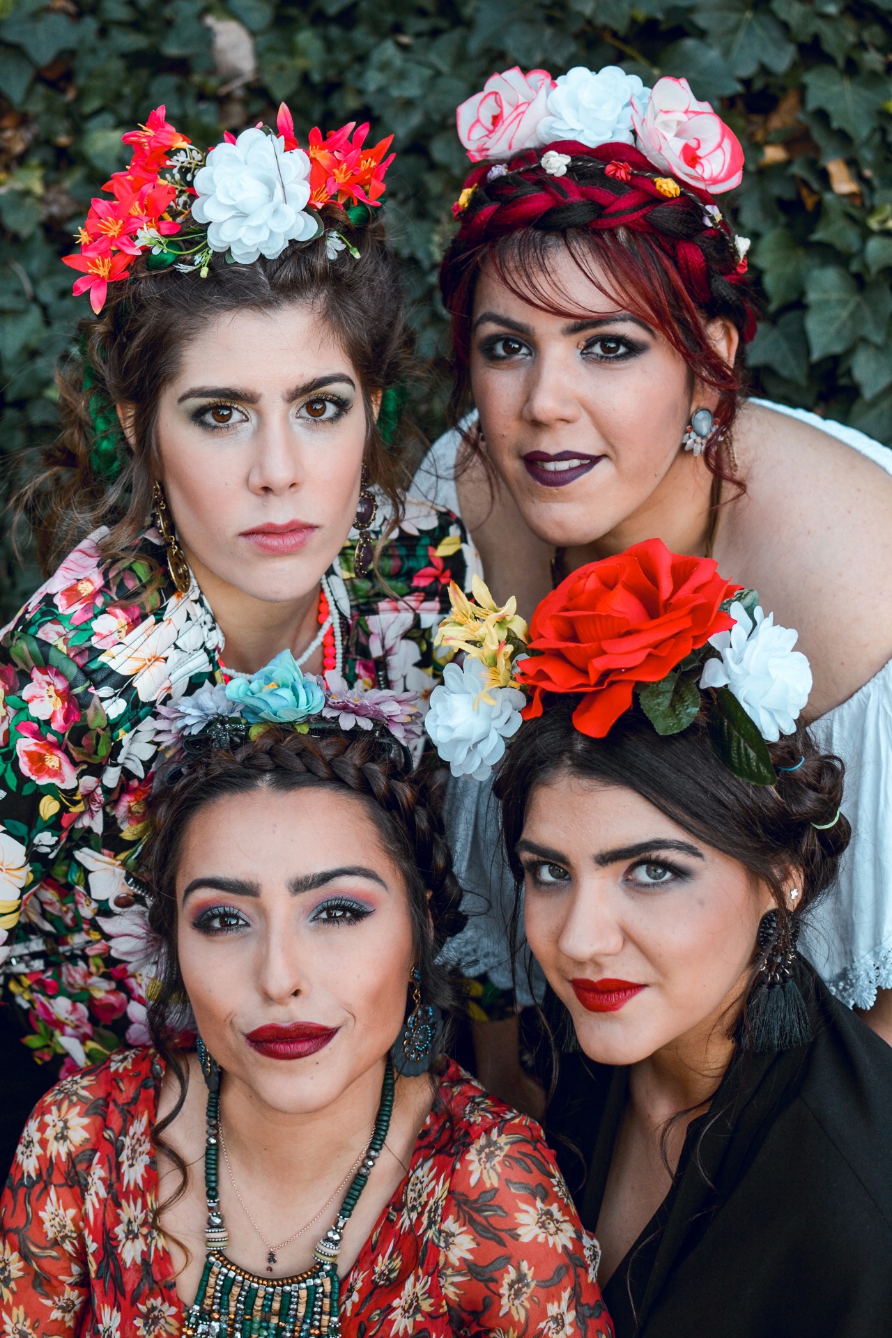 Seguidamente podemos ver otros outfits elaborados por nosotras mismas, adaptándonos a la figura de cada una de las modelos, creando también diferentes versiones de la pintora mexicana.